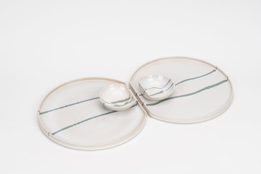 Our 60cm Dual Platter consists of two Dinner Plates and two small bowls combined together giving multipurpose functionality. This is ideal for home entertainers that want to wow their guests